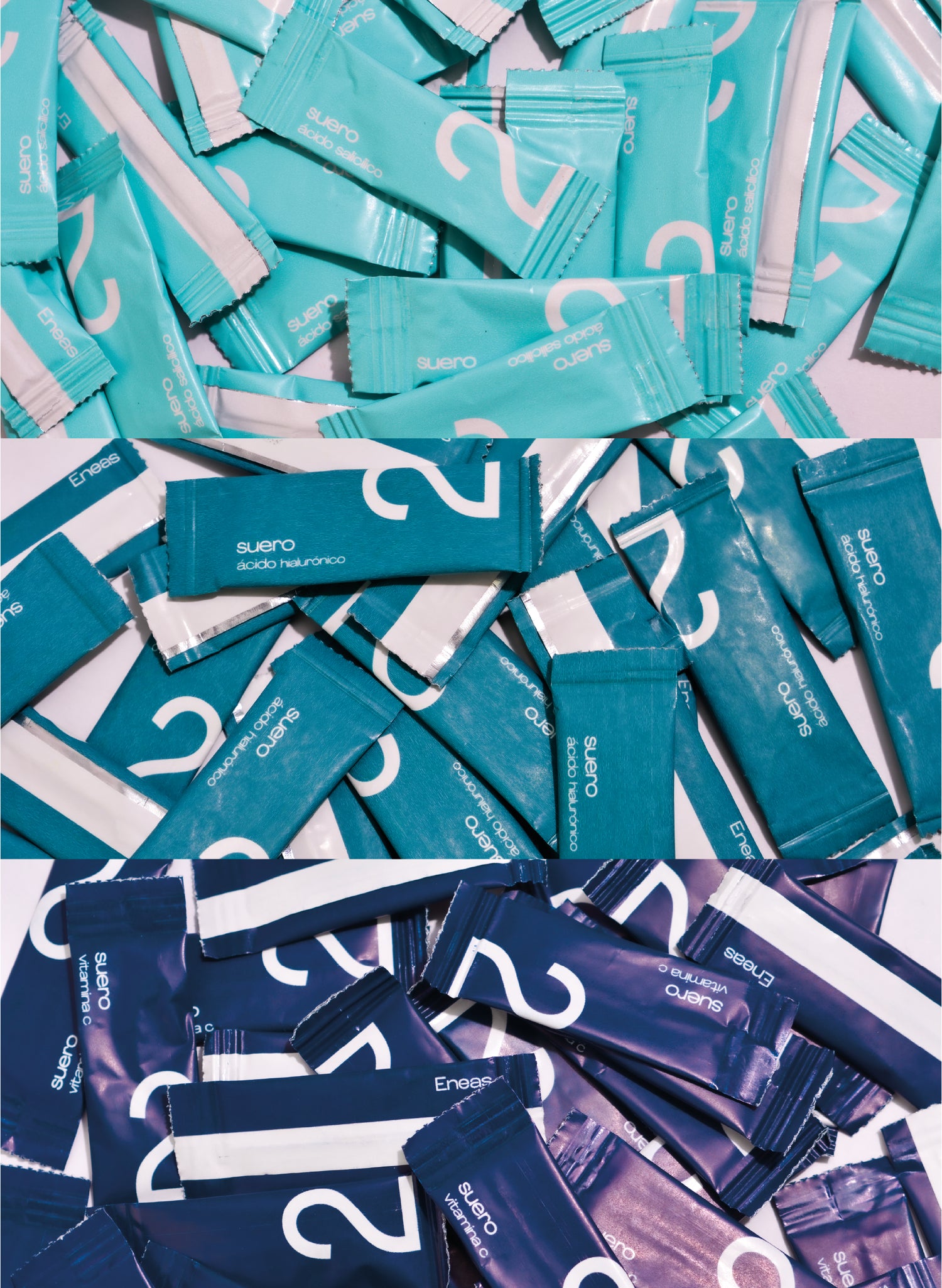 Sobres individuales pre-dosificados, empaques que conservan mejor el producto, sin frascos que se contaminan o se desperdician.